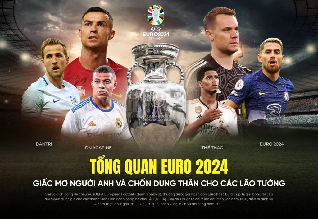 Euro 2024 sẽ diễn ra tại Đức từ ngày 14/6 đến 14/7, với 10 sân vận động ở 10 thành phố trên khắp nước Đức được chọn làm nơi tổ chức các trận đấu. Các sân vận động bao gồm: Olympic (Berlin), Allianz Arena (Munich), Signal Iduna Park (Dortmund), MHP Arena (Stuttgart), Veltins-Arena (Gelsenkirchen), Volksparkstadion (Hamburg), Merkur Spiel-Arena (Dusseldorf), Sân vận động RheinEnergie (Cologne), Red Bull Arena (Leipzig) và Deutsche Bank Park (Frankfurt Main).
